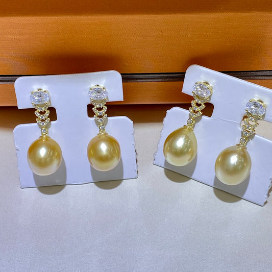 10-11mm South Sea Golden Pearl Drop Earrings With S925 Sterling Silver