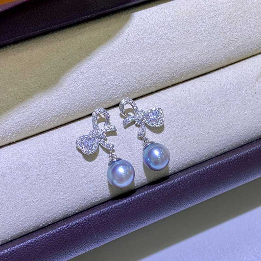 Bow Shape 7-8mm Japanese Seawater Akoya Pearl Earrings