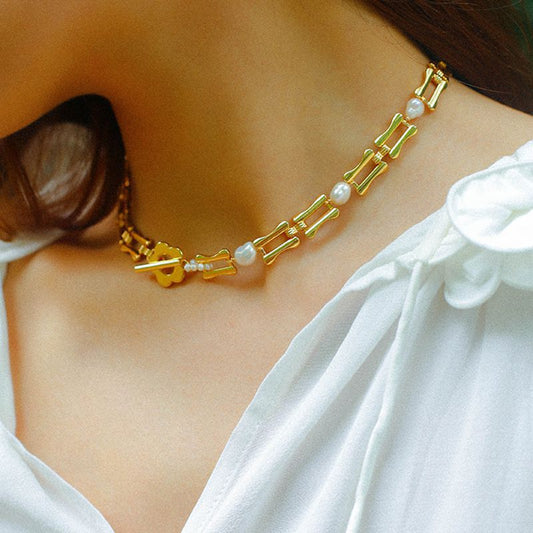 Bamboo Chain Panel Pearl Choker