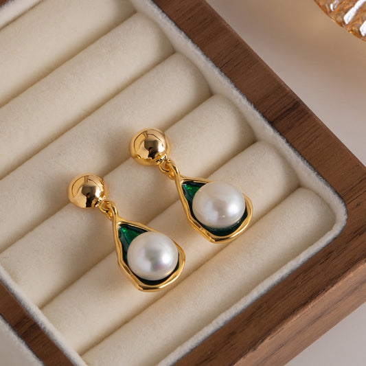Drop-Shaped Leaf Freshwater Pearl Earrings