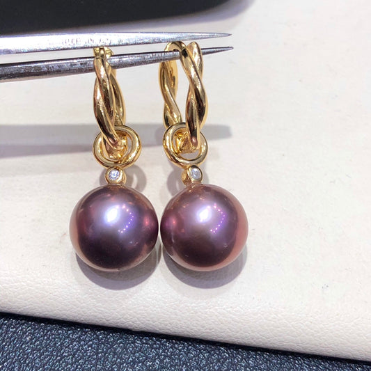Dual Purpose 11mm Freshwater Edson Purple Pearl Earrings & 925 Sterling Sliver