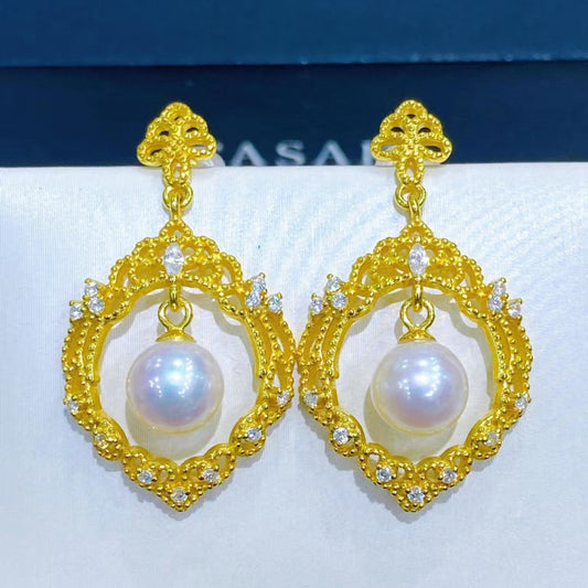 Lace Court-style 7-8mm Freshwater Pearl Earrings