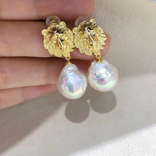 Lion Style 12-13mm Freshwater Baroque Pearl Earrings