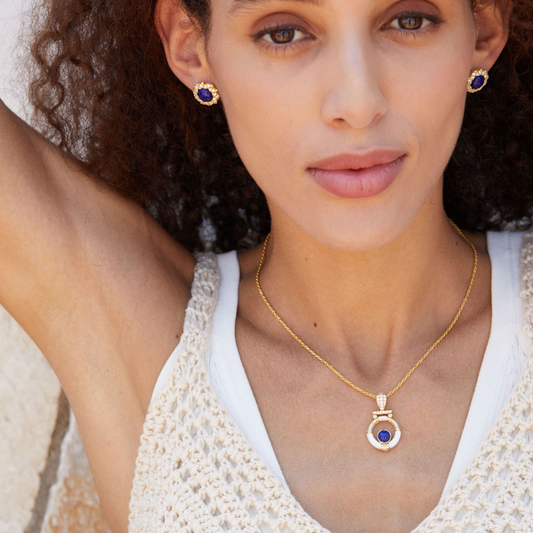 Natural Lapis Lazuli & Natural White Mother-of-pearl Necklace