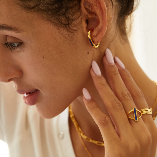 Natural Lapis Lazuli U-shaped Stud Earrings
