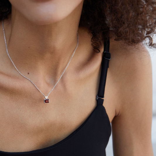 Natural Garnet Perfume Bottle S925 Sterling Silver Necklace