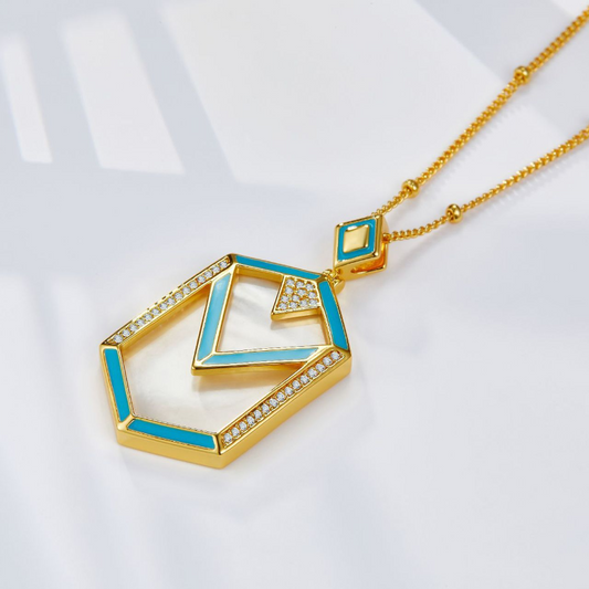 Natural White Mother-of-pearl Hexagon Enamel Craft S925 Sterling Silver Necklace