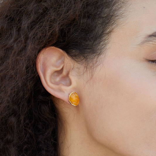 Natural Rough Citrine S925 Sterling Silver Stud Earrings