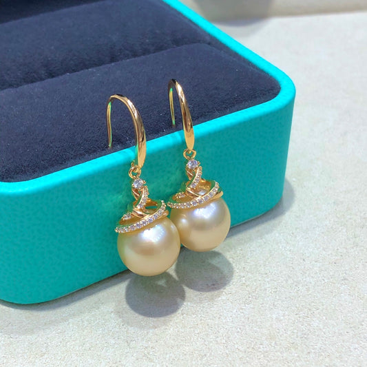 10.7mm South Sea Golden Pearl Earrings & 925 Sterling Sliver