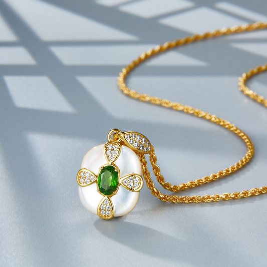 White Mother-of-pearl Natural Diopside S925 Sterling Silver Pendant