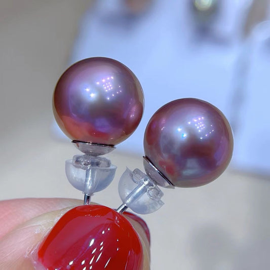 9-10mm Freshwater Edison Purple Pearl Stud Earrings