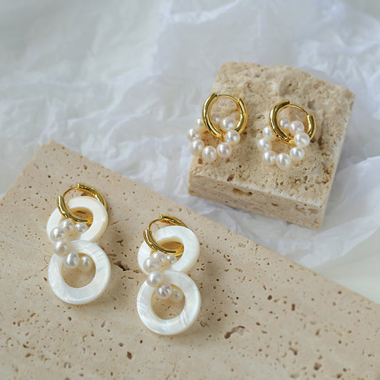 Circle Shell And Pearl Earrings